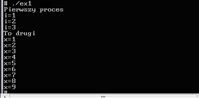 2. Sprawdzić, i wyjaśnić dlaczego, jeśli w procesie potomnym będzie wykonywana pętla: for (x=5;x>-5;x--)