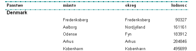6. Utwórz raport przedstawiający wszystkie miasta danego