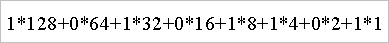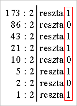 Wystarczy teraz tylko dodać liczby, a otrzymany wynik jest naszą "przeliczoną" z systemu dwójkowego na dziesiętny liczbą. W tym wypadku jest to liczba 173.