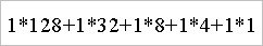 W powyższym wzorze w miejsca „x” wstawiamy na odpowiednie (kolejne) pozycje kolejne cyfry z przeliczanej liczby. Wyglądało by to tak: Aby uzyskać ostateczny wynik musimy jeszcze to wszystko wyliczyć. Wystarczy zauważyć pewną zależność - każda następna potęga liczby 2 jest od swojego poprzednika dokładnie dwukrotnie większa. Co nam daje ta wiedza? Otóż nie musimy pracowicie wyliczać potęg tylko do wzoru wstawić gotowe liczby: 1, 2, 4, 8, 16, 32, 64, 128 (oczywiście kolejne liczby są tworzone tak samo 256, 512, 1024, 2048, itd.).