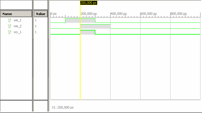 We_2 <= ‘0’, ‘1’ after 200 ns, ‘0’ after 600 ns;
