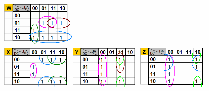 Podczas projektowania transkoder został wysunięty wniosek, że nasz wariant nie jest jedynym który doprowadzi do założonego celu i gdy zajdzie potrzeba zaprojektowania rzeczywistego układu to minimalizację funkcji boolowskich będzie można wykonać pod określone proporcje funktorów jakimi będzie się dysponować, np. gdy będziemy posiadać więcej bramek OR to minimalizowaną funkcję zapiszemy w KPI, gdyż w takim przypadku będzie ich potrzeba więcej niż przy KPS. Można by również wykonać samą minimalizację inną metodą niż przy pomocy tablic Karnaugh’a i ocenić co jest bardziej opłacalne.