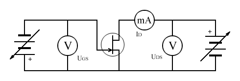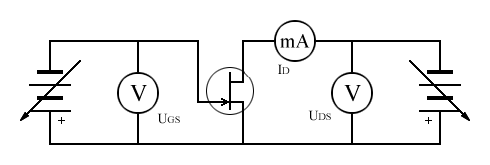 1. Pomiar charakterystyk przejściowych tranzystora złączowego BF245A.
