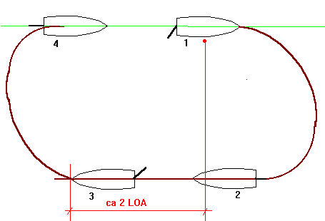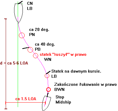 Zakżada sie, z e inercja swobodna wynosi ok. 30-40 LOA (dla statku ca 30,000 DWT) tj ok 6000-8000 m (3.5-4.5 Nm)