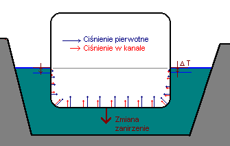 zmniejszenie cisnienia. To zjawisko obserwowane jest w wa skich kanażach przy przejsciach statku: nastepuje przyspieszony przepżyw wody i zachwianie rownowagi parcia na podwodzie statku: