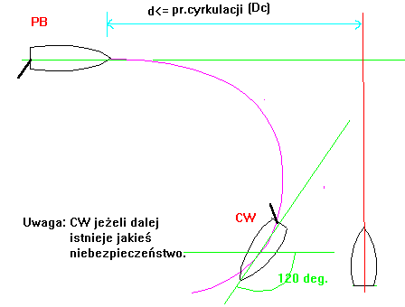Manewr ominiecia przy pracy silnika CN a hamowanie dopiero po wyminieciu niebezpieczenstwa lub po z a danej zmianie kursu: