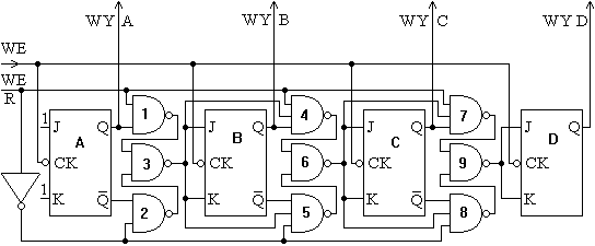 3. Z czterech przerzutników JK (potrzebne dwa układy scalone