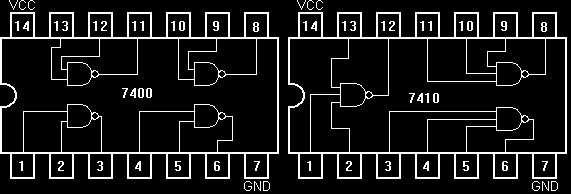 scalony UCY7400, zawierający 4 dwuwejściowe bramki NAND. Układy