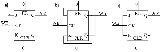 na stałe odpowiednich stanów na wejścia J i K, na rys. b i c dwójki