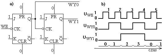 wyjścia obu dwójek ("WY0" i "WY1") stanowią wyjście licznika. Za-