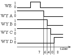 przedstawić wykresy zmian stanów logicznych na wejściu i wyjściu dla