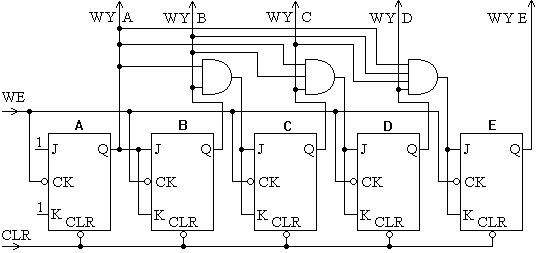 Połączone ze sobą są wejścia kasujące (zerujące) wszystkich dwójek.
