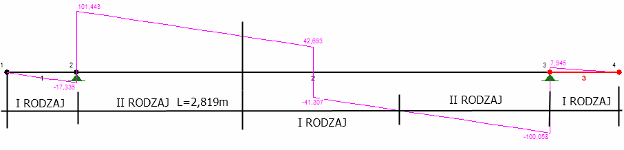 4) Przyjęcie schematu statycznego i wyznaczenie ekstremalnych momentów i sił tnących: