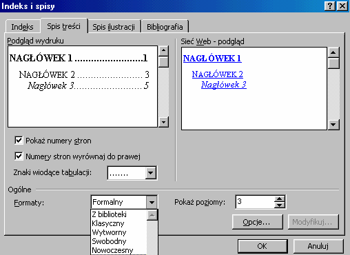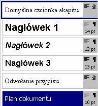 dyspozycji wszystkie style potrzebne do sformatowania pisma danego
