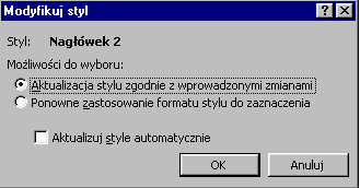 Modyfikuj styl wybrać aktualizacj stylu i zdecydować czy pozostałe