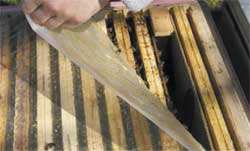 Ilość miodu w nadstawce określamy, wyjmując po jednej skrajnej ramce. Jeżeli miód w