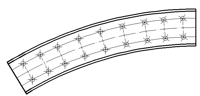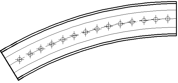 6. Dla centralnego łuku zamieniamy rodzaj linii na osiową (jeżeli nie ma jej na liście linii