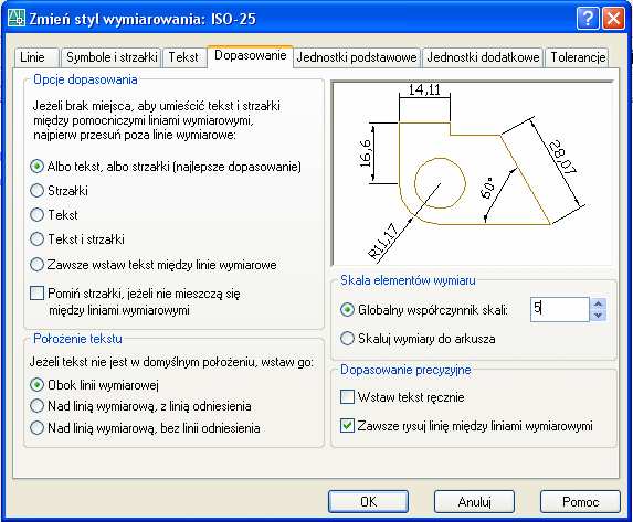16. Wymiarujemy obiekt. W stylu wymiarowania przyjmujemy globalny współczynnik skali