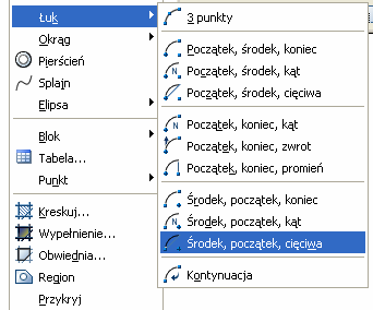 3. W celu otrzymania łuku o długości 810 korzystamy z opcji w Menu górnym: Rysuj