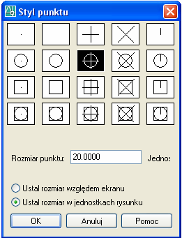 1. Ustawiamy sposób prezentacji punktu (Menu górne: Format Styl punktu) (Format