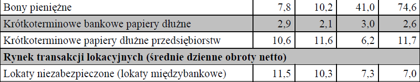 Największymi segmentami rynku pieniężnego ze względu na rodzaj transakcji są: