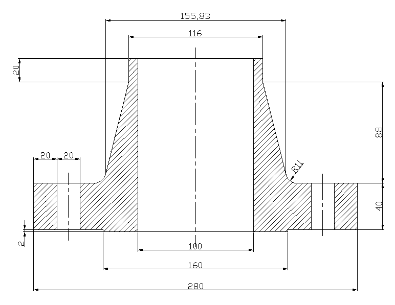 Wykonaj poniższy rysunek z wykorzystaniem podanych wymiarów. Zastosuj warstwy, a z powtarzających się elementów utwórz blok wewnętrzny z atrybutami. Utwórz nazwany widok na dowolny fragment rysunku. Zwymiaruj utworzony rysunek (w tym celu utwórz nowy styl wymiarowania tak aby był w maksymalnym stopniu zbliżony do tego na rysunku). Przygotuj rysunek do wydruku z wykorzystaniem co najmniej dwóch rzutni, na arkuszu dodaj tabelkę, w której umieść dane dotyczące autora.