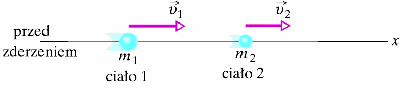 2 < 0 otrzymane w tym przypadku należy również interpretować jako ruch odpowiedniego ciała w lewo po zderzeniu
