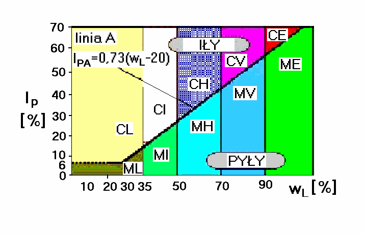 Wykres plastyczności według Casagrande’a (karta Casagrande’a ) zmodyfikowany przez IAEG