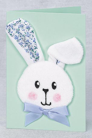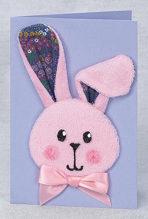 Place the tracing paper over the diagram of the bunny face and trace the outer line. Place the tracing face down on the stiff card and retrace, thus transferring the line to the card. Cut out the card face and place it over the wadding. Cut the wadding to size using the card face as a template.