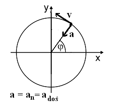 Ruch po okrę gu – stała prę dkość ką towa Układ kartezjański: