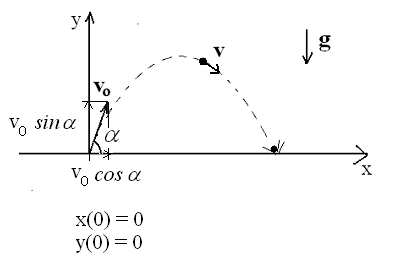 Z wieży o wysokości H wyrzucono w dół piłkę z zerową prędkością początkową. W tym samym momencie spod wieży wystrzelono pionowo w górę, w kierunku piłki, pocisk nadając mu prędkość początkowa v . Po jakim czasie pocisk uderzy w 0