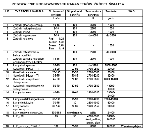 27. Wymienić źródła światła porządkując je wg skuteczności świetlnej. Podać przykłady wydajności świetlnej. W7 35-