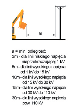 • 10 m – dla linii wysokiego napięcia od gabaryty przejeżdżających pojazdów