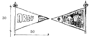 Ma on kształt trójkąta równoramiennego o podstawie 30 cm, boki po 50 cm (proporzec zwykły)