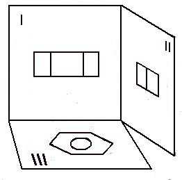 3. Dimetria prostokątna - kąty między osiami wynoszą 970 i 1310, występuje skrót długości krawędzi wzdłuż osi Y),