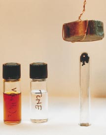 NIEMETALICZNY MAGNES (wewnàtrz probówki dzia∏ania magnetycznych zasta-z prawej) uzyskano z dwóch cieczy
