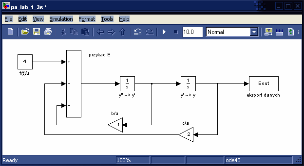 title('przyklad E - model w simulinku');