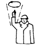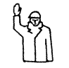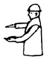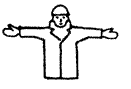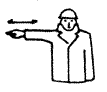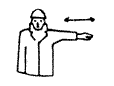 Prawa ręka wyciągnięta poziomo z dłonią zwróconą wewnętrzną stroną do dołu, wykonuje małe powolne ruchy w OD SYGNALISTY