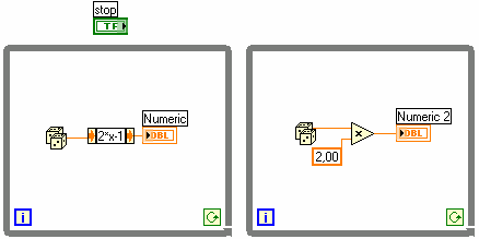 W jednej pętli użyjemy terminala przycisku a w drugiej zmiennej lokalnej tej kontrolki.