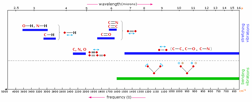 Potrójne wiązania charakteryzują się wyższymi częstotliwościami oscylacji niż odpowiadające podwójne wiązania, które z kolei mają wyższą częstotliwość od pojedynczego wiązania.
