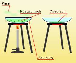 odparowuje woda a w naczyniu pozostaje sól.