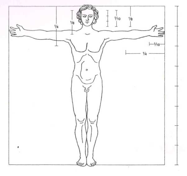 VII-a. Pierwszy układ proporcji człowieka według tekstu Witruwiusza