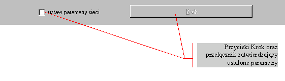 Po prawidłowym określeniu parametrów (i zaznaczeniu przełącznika) sieci użytkownik może zacząć prezentację. Kolejne kroki prezentacji są uruchamiane poprzez wybranie myszką przycisku “Krok”.