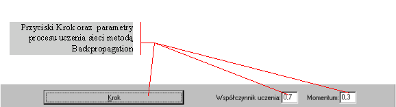 Użytkownik może modyfikować współczynnik (learning rate) oraz momentum.