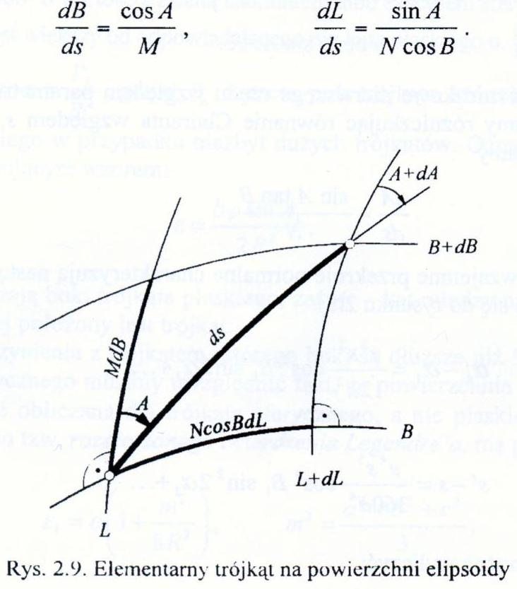2. Przekroje normalne i linia geodezyjna na powierzchni elipsoidy obrotowej, związki różniczkowe pierwszego rzędu dla linii geodezyjnej.