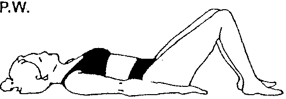 - leżenie na plecach, kończyny dolne zgięte w stawach kolanowych
