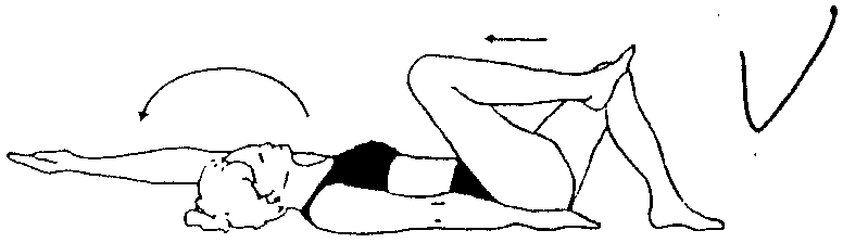 - leżenie na plecach, kończyny dolne zgięte w stawach biodrowych,
