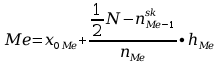 modalna (dominanta), szereg rozdzielczy przedziałowy: