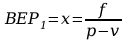 Oznaczenia jak przy wzorze na BEP1, x’ – maksymalna wielkość produkcji odpowiadająca poziomowi zdolności produkcyjnej lub poziomowi zaspokojenia przewidywanego popytu wyrażona w jednostkach naturalnych