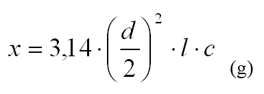 gdzie x – ilość podstawy na 1 pręcik, d – średnica pręcika ( np. 0,5 cm), l – dł. pręcika ( np. 5 cm), c – ciężar właściwy podstawy (np. masło kakaowe – 0,95 g/cm3, masa żelatynowo – glicerynowa – 1,15 g/cm3).